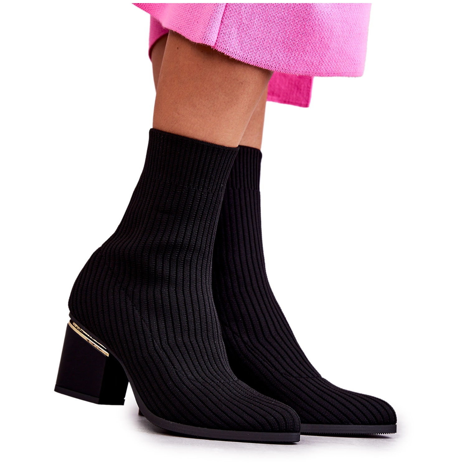 Izrađene od fleksibilnog, rebrastog tekstilnog materijala, ne samo da savršeno pristaju uz nogu, već osiguravaju i udobnost tijekom svakodnevnog nošenja. Postavljene na masivnu petu visine 7,5 cm, korisniku dodaju eleganciju i stabilnost. Špica optički izdužuje noge i ističe ženstvenu siluetu.