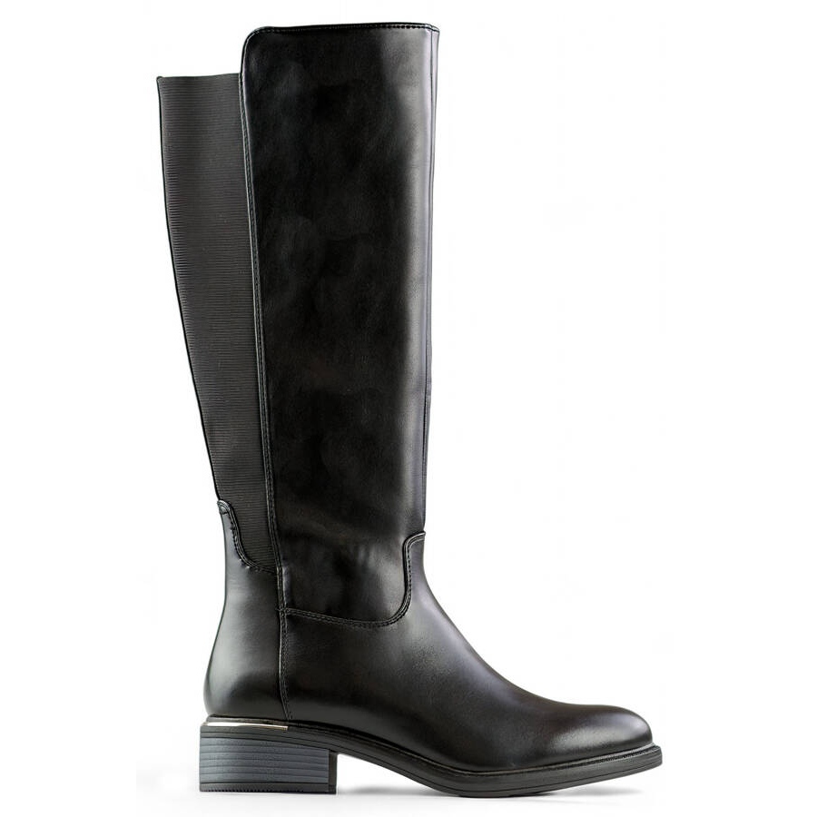 Njihova klasična crna boja čini ih da odgovaraju mnogim stilovima - i ležernijim i elegantnijim. Visina gornjeg dijela od oko 40 cm savršeno dopire do koljena, a ravna peta s visinom od 4 cm dodaje suptilnost i olakšava nošenje svakodnevno.