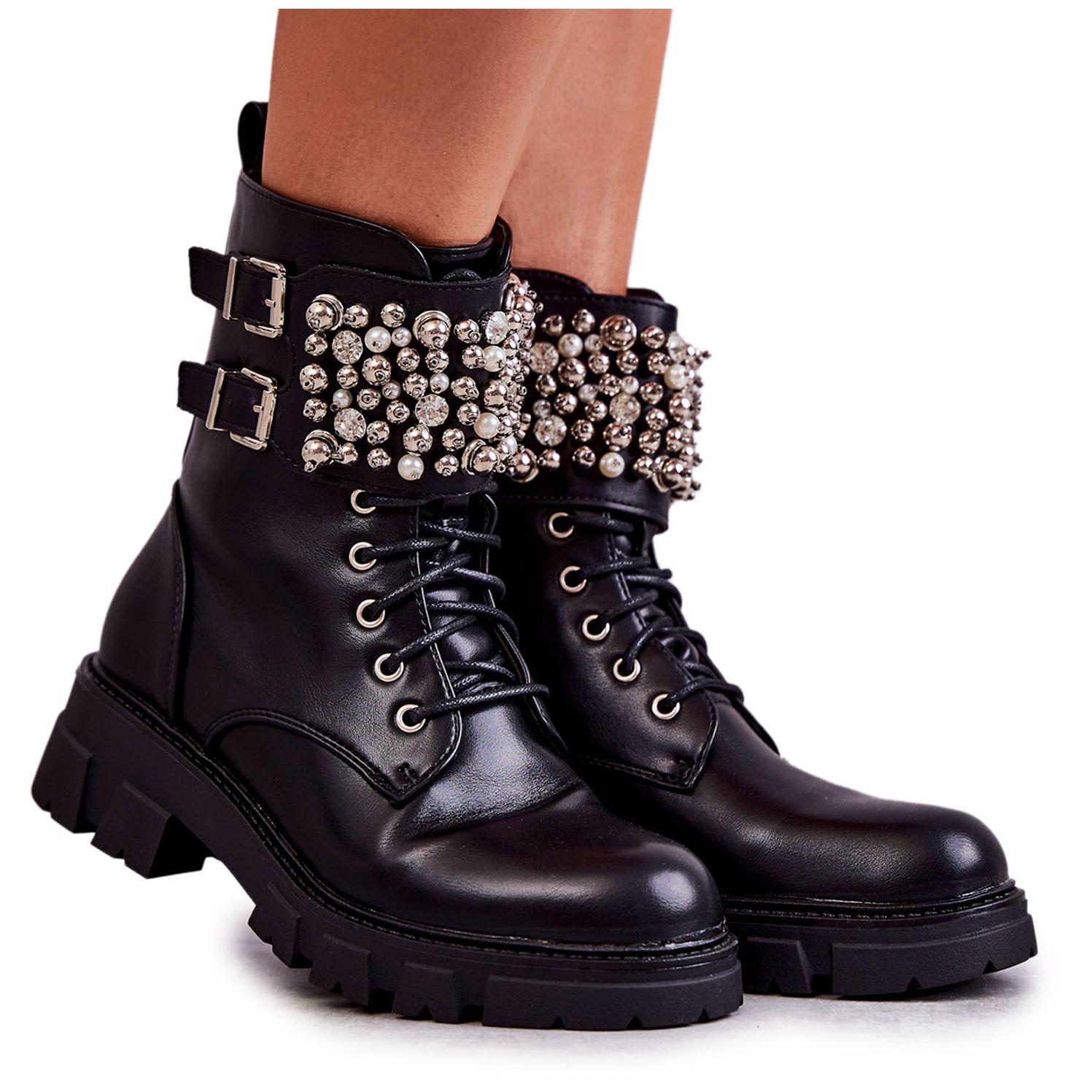 Otkrijte jedinstvene ženske PG1 čizme koje spajaju stil, udobnost i eleganciju. Model gležnjača s ukrasima na vezanje u crnoj boji nezaobilazan je u ormaru svake žene! Izrađene od visokokvalitetne eko-kože, jamče izdržljivost i udobnost višesatnog nošenja.