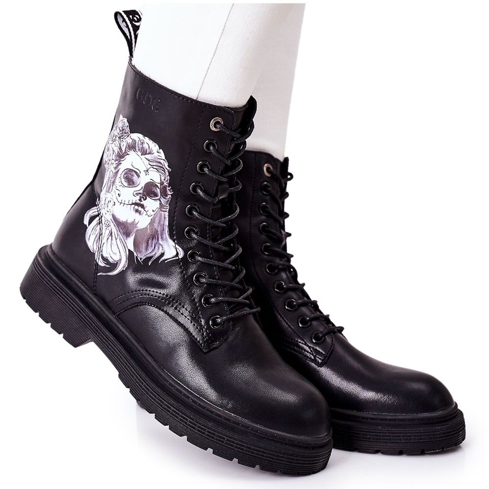 Ženske trapper čizme s printom GOE II2N4046 u crnoj boji odličan su izbor za žene koje cijene odvažan stil i originalna rješenja. Izrađene od visokokvalitetne prirodne kože, ove čizme oduševljavaju ne samo svojom estetikom, već i udobnošću nošenja. Tamni print na gornjem dijelu daje im karakter, zbog čega se dobro slažu i s ležernim i sa stiliziranijim kombinacijama.