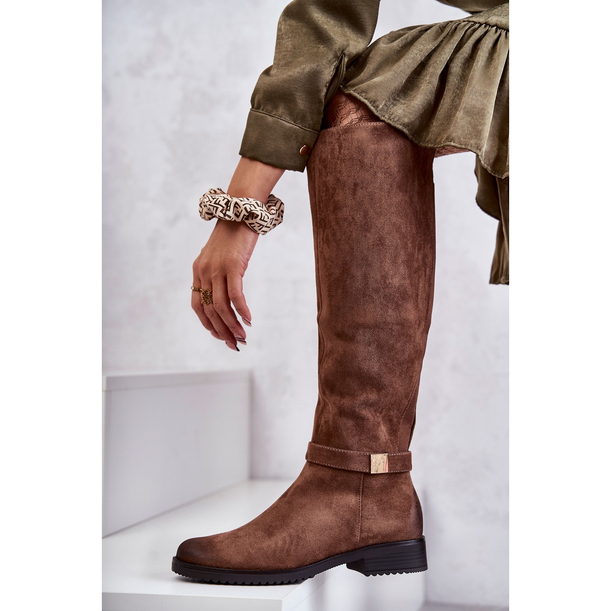 Detalji: Vinceza Ženske čizme s ravnom petom od brušene kože, bež Henrike smeđa