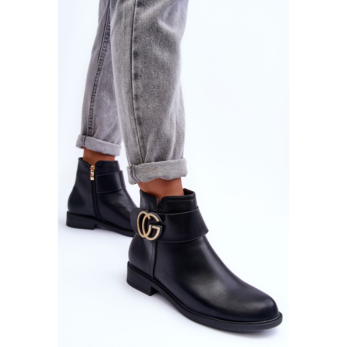 Elegantne, crne FD1 čizme izrađene od ekološke kože univerzalni su model za jesensku/zimsku sezonu. Postavljene na niskoj, stabilnoj peti (3 cm) sa laganom platformom (1 cm), sa zaobljenim nosom i ukrasnim pojasom - oni će dodati stil svakodnevnim i više izlaznih stilizacija. Učvršćivač s patentnim zatvaračem na unutrašnjosti olakšava stavljanje.