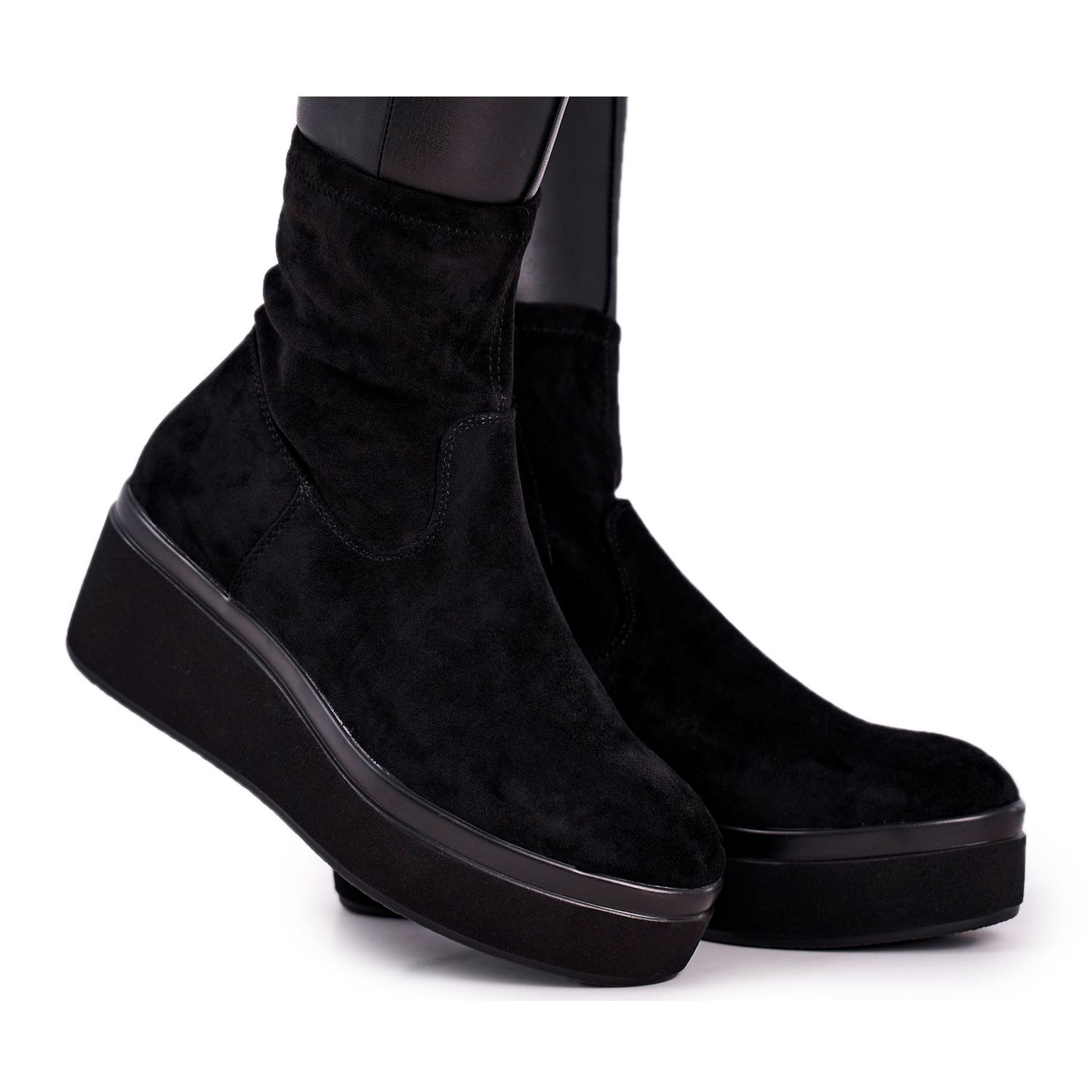 Čizme su iznutra izolirane krznom ugodnim na dodir, što ih čini savršenim i u hladnijim danima. Delikatna klin visine 6,5 cm i platforma visine 3,5 cm jamče udobnost pri nošenju bez opterećenja stopala, što ih čini idealnim izborom za svakodnevno nošenje.
