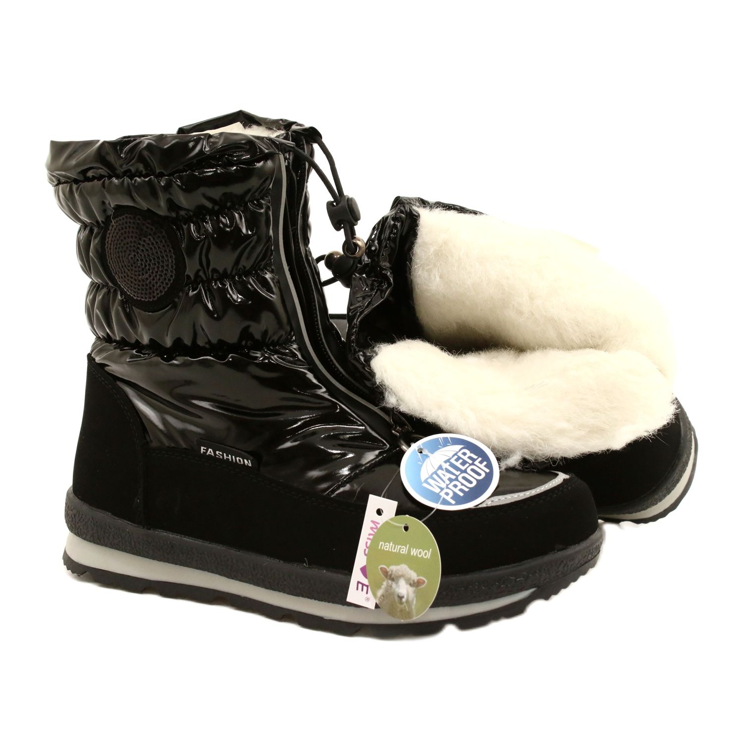 Čizme za snijeg opremljene su inovativnim mijehom za jezičak na patentnom zatvaraču koji učinkovito sprječava ulazak snijega u cipelu. Unutrašnjost je izolirana mekim krznom od prirodne vune koja jamči udobnost i toplinu čak iu najhladnijim danima. Mekani i lagani materijal od kojeg su napravljene cipele osigurava udobnost nošenja, a izdržljivost ojačanog materijala znači da će služiti više sezona.