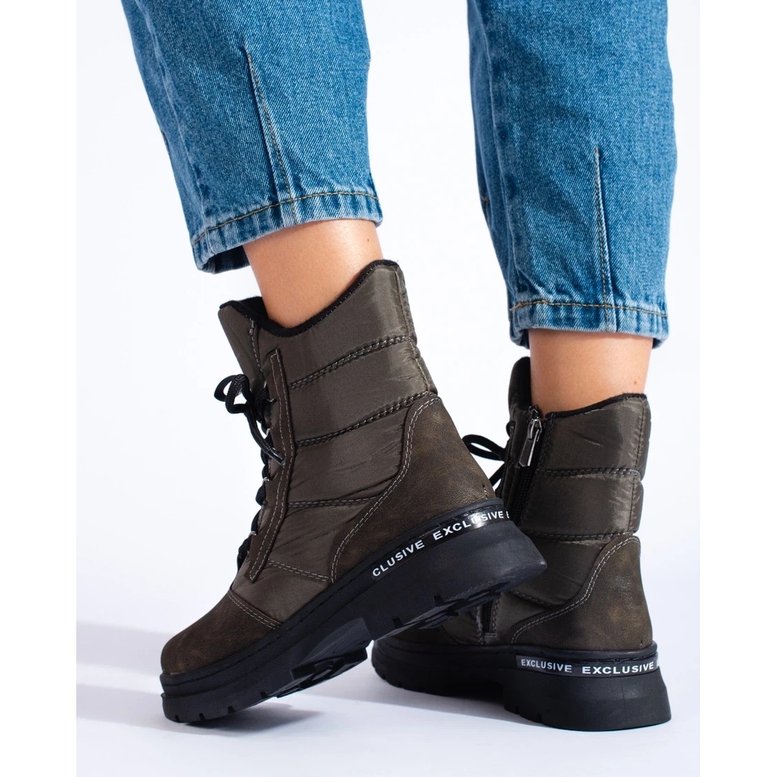 Detalji: Ženske čizme za snijeg na vezanje zelena