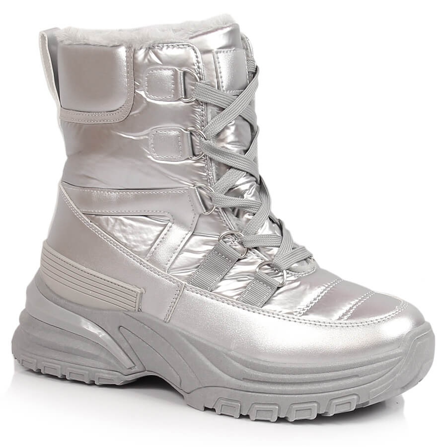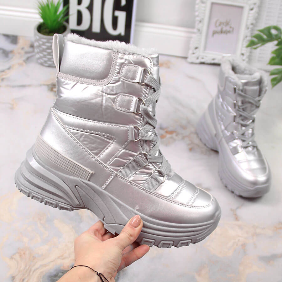 POTOCKI Ženske čizme za snijeg na vezanje metalik srebrne Potocki srebro