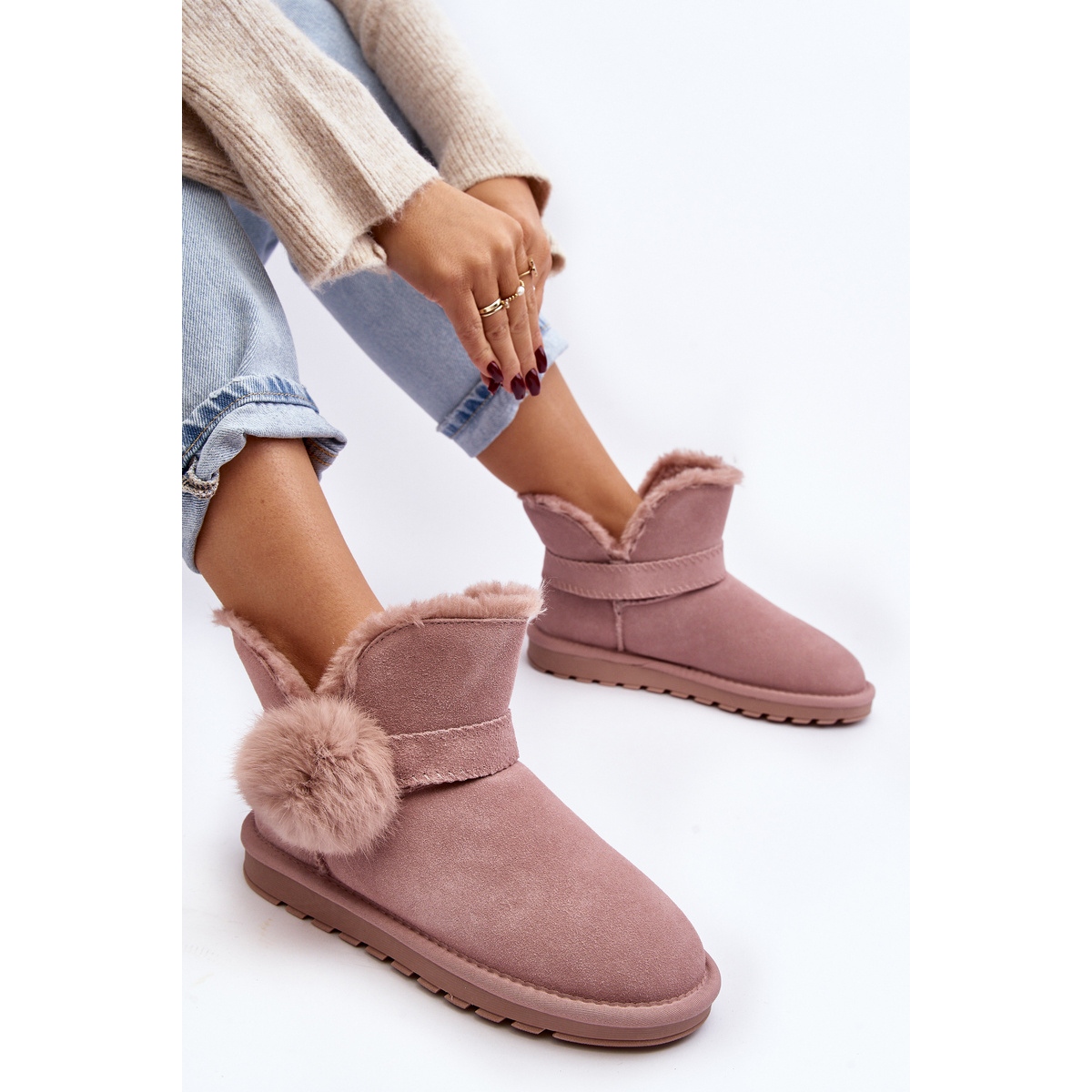Ženske čizme za snijeg od brušene kože s izrezima, ružičasti Eraclio