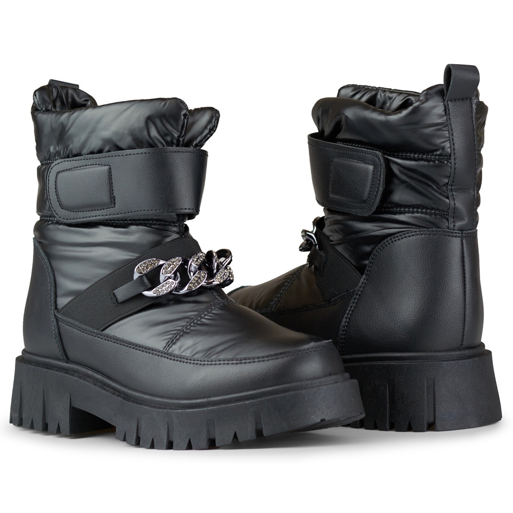 Ženske snježne čizme - crne s lancem