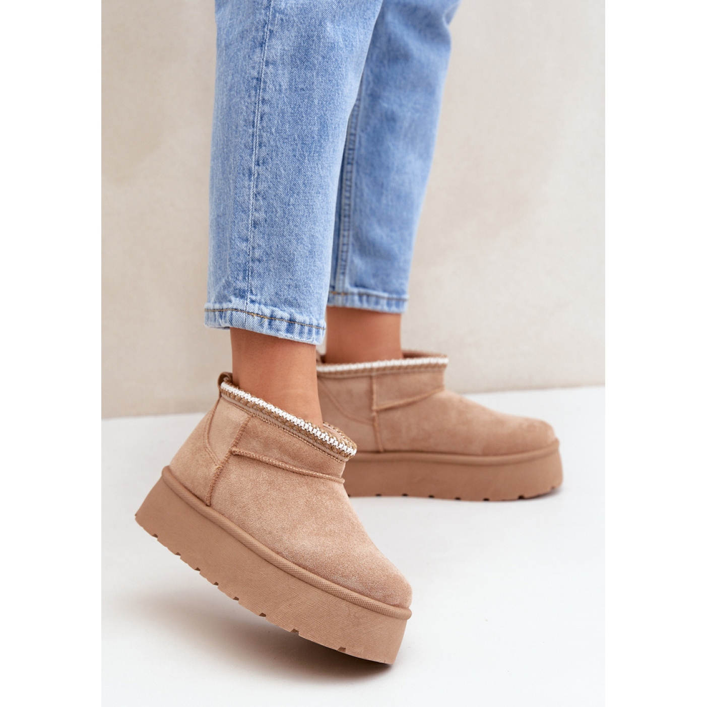 Pojedinosti: Ženske čizme za snijeg s platformom, bež antilop