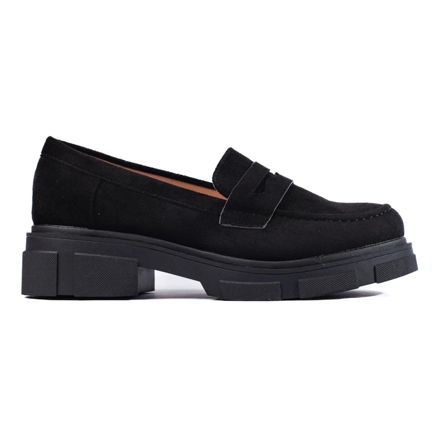 Elegantne i udobne crne cipele izrađene od ekološke antilop. Klasičan, ležerni rez natikača s punim, okruglim nosom, izgrađenim up i mekim pričvršćivanjem i udoban umetak ekološke kože. Savršeno za svakodnevnu osnovu - za posao, za šetnju i za urbane stililizacije.