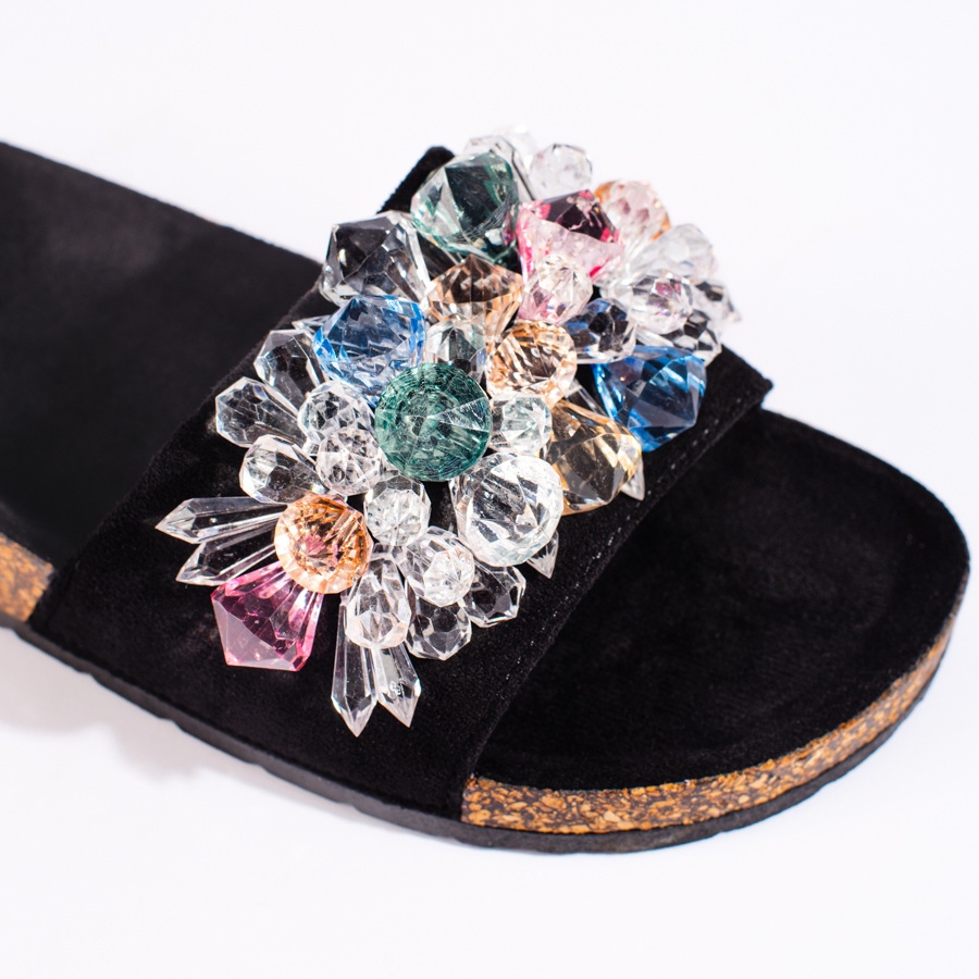 Plastični potplat s gaznoga sloja jamči stabilnost i prianjanje, idealno za šetnje gradom ili opuštanje u vrtu. Dodatna prednost je suptilni detalj u obliku rhinestones, koji zaklopima daje jedinstveni karakter.