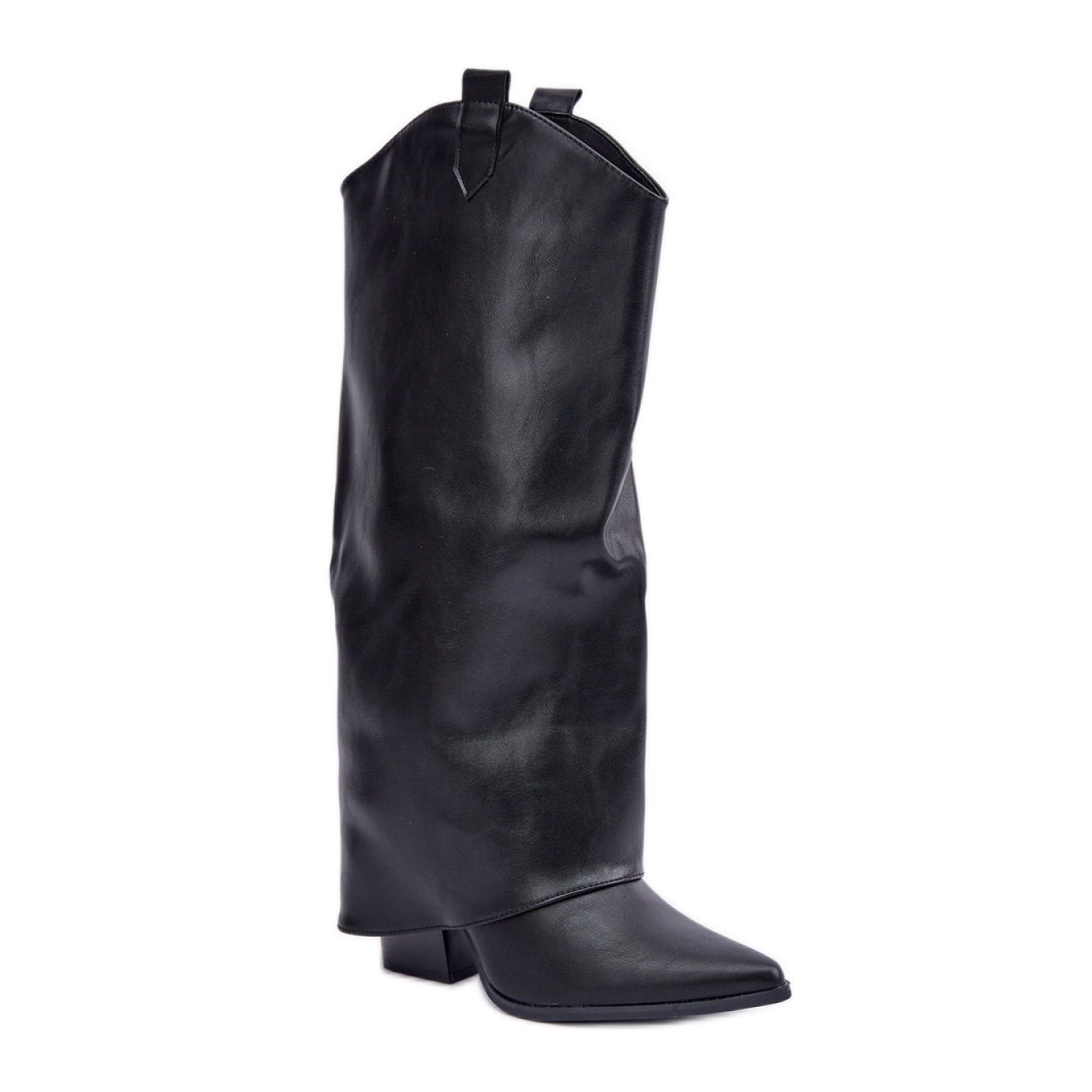 Pojedinosti: Ženske crne čizme s okrenutim gornjištem crna