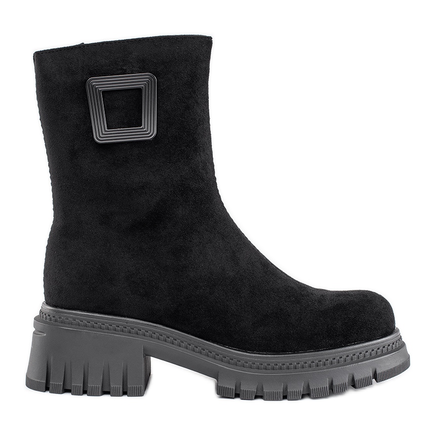 Ovaj je model opremljen tekstilnim uloškom i izolacijom, što ga čini idealnim izborom za hladnije jesenske, zimske i proljetne dane. Okrugli nos i visoki gornji dio, dosežući gležnjeve, čine čizme savršeno naglašavaju noge, a njihova crna boja je univerzalna i odgovara mnogim odijelima.