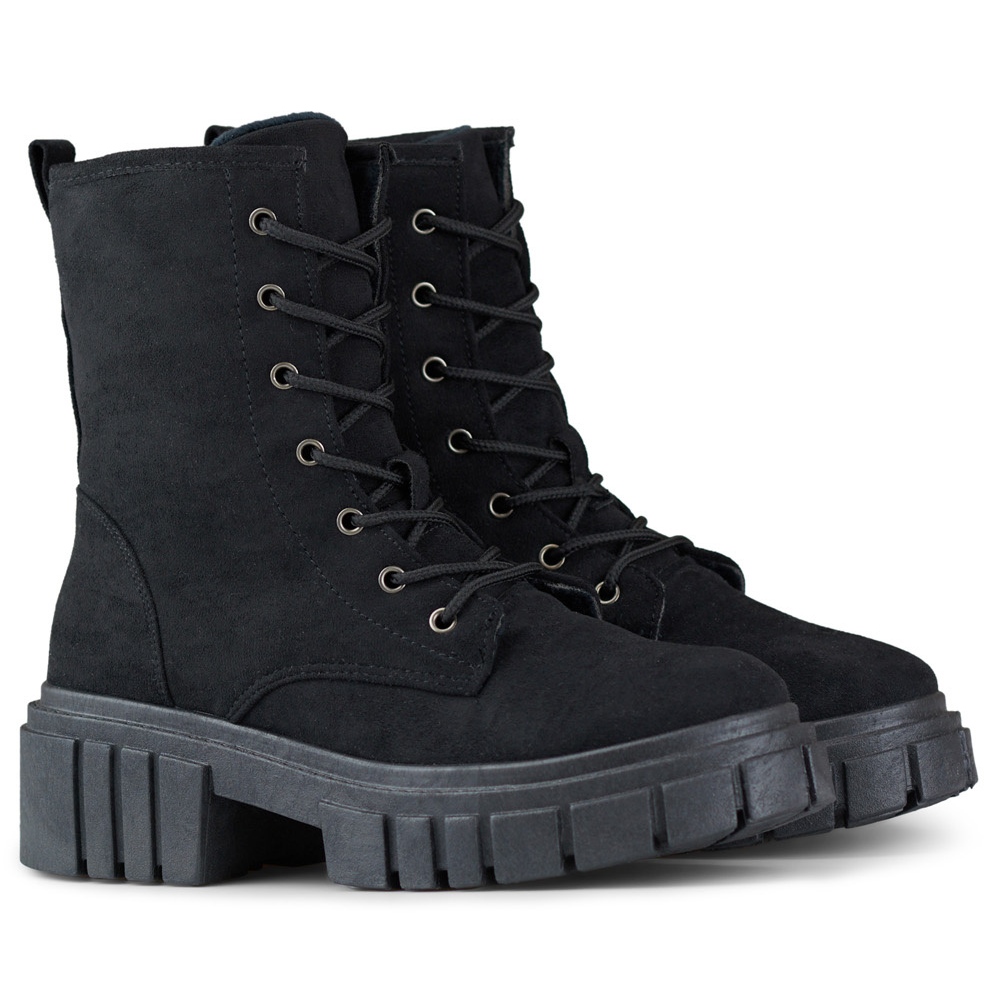 Ženske antilop čipke -Up čizme - radnice, crne