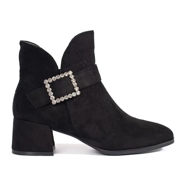 Pojedinosti: Ženske crne gležnjače od brušene kože sa srebrnom kopčom crna