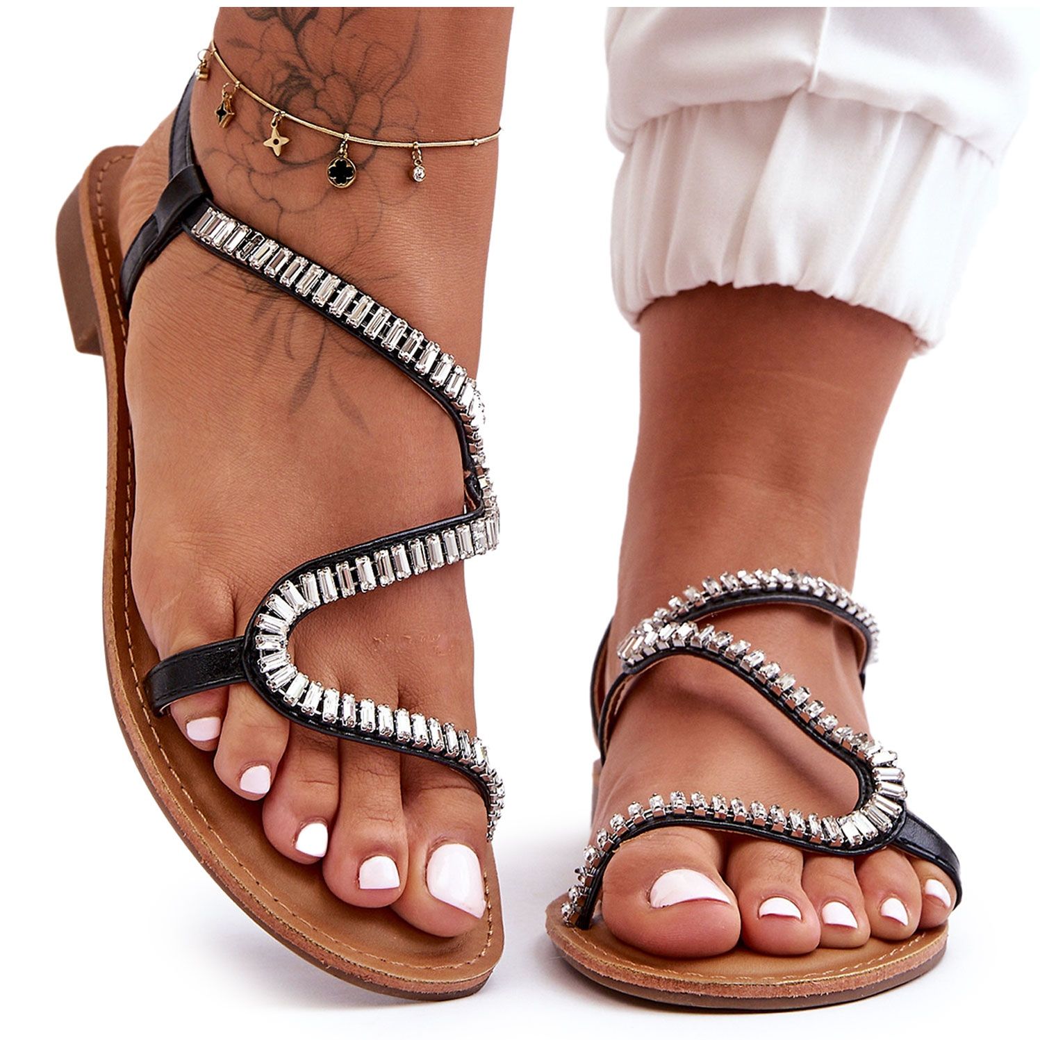 Klasične, elegantne sandale s klizanjem, savršene za ljetnu sezonu. Hayen model kombinira jednostavnost rezanja s suptilnim sjajem - tanke trake ukrašene cirkonima dodaju stil bez ometanja univerzalnog karaktera cipela.