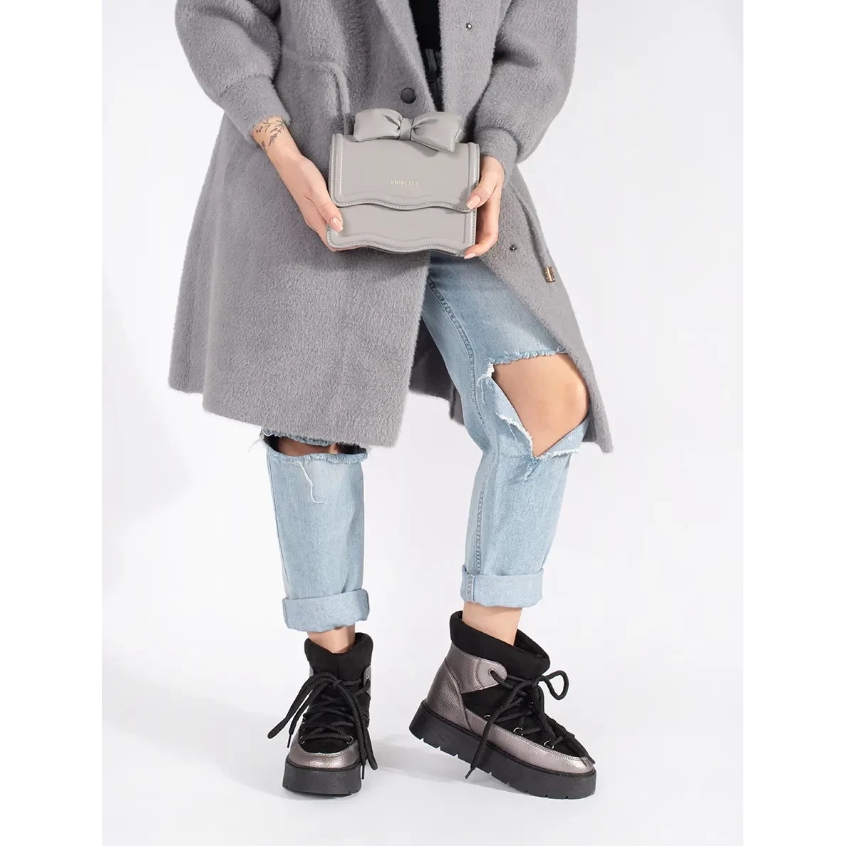 Otkrijte jedinstvenu udobnost i stil koji na debeli potplat donosi crne i srebrne čipkaste snježne čizme. Ove modne cipele, koje je proizvela ugledna marka, savršeno su rješenje za hladne dane u jesen i zimsku sezonu. Izrađene od organske kože s unutrašnjošću tekstila, pružaju izvrsnu zaštitu od hladnoće, dok se brinu o udobnosti tijekom nošenja.