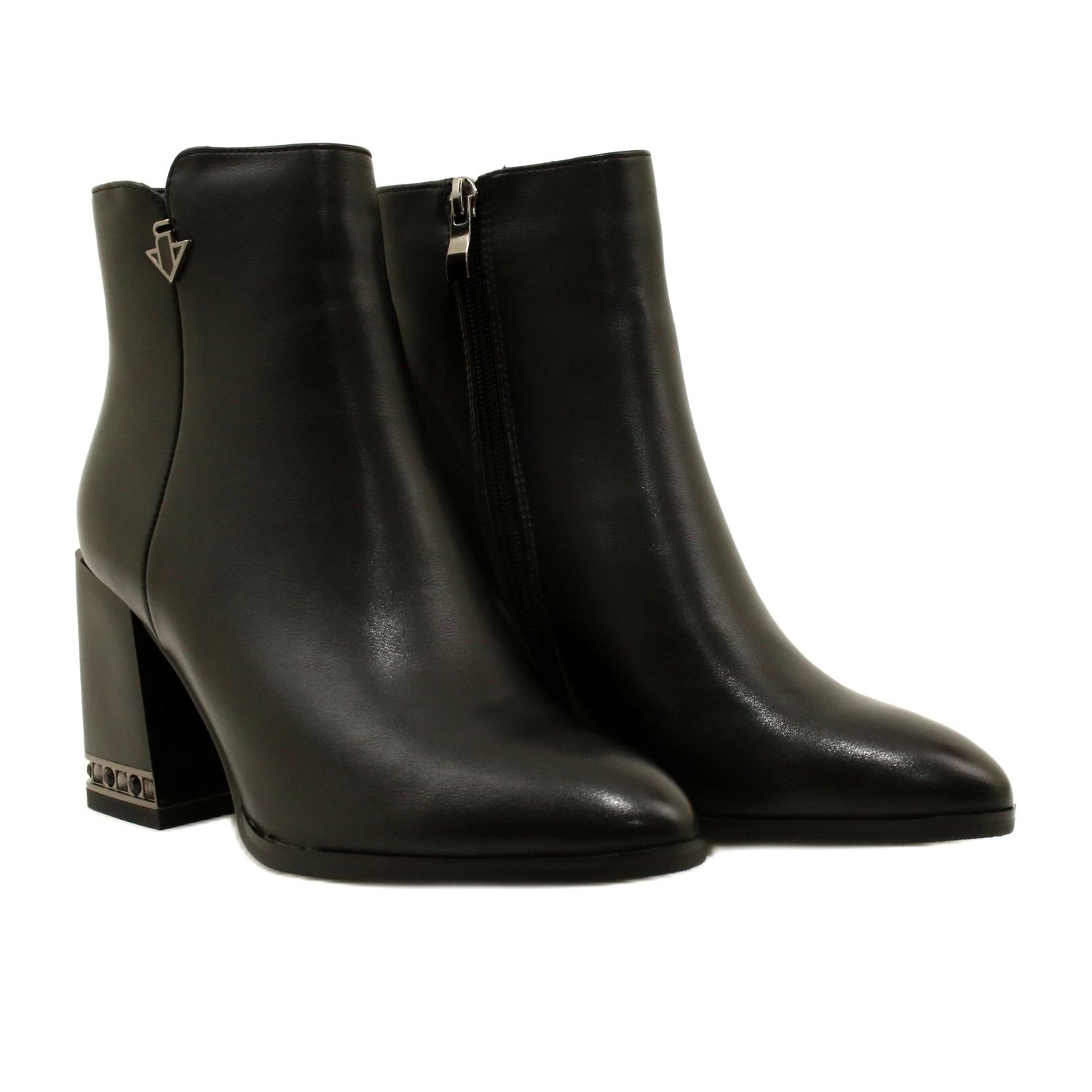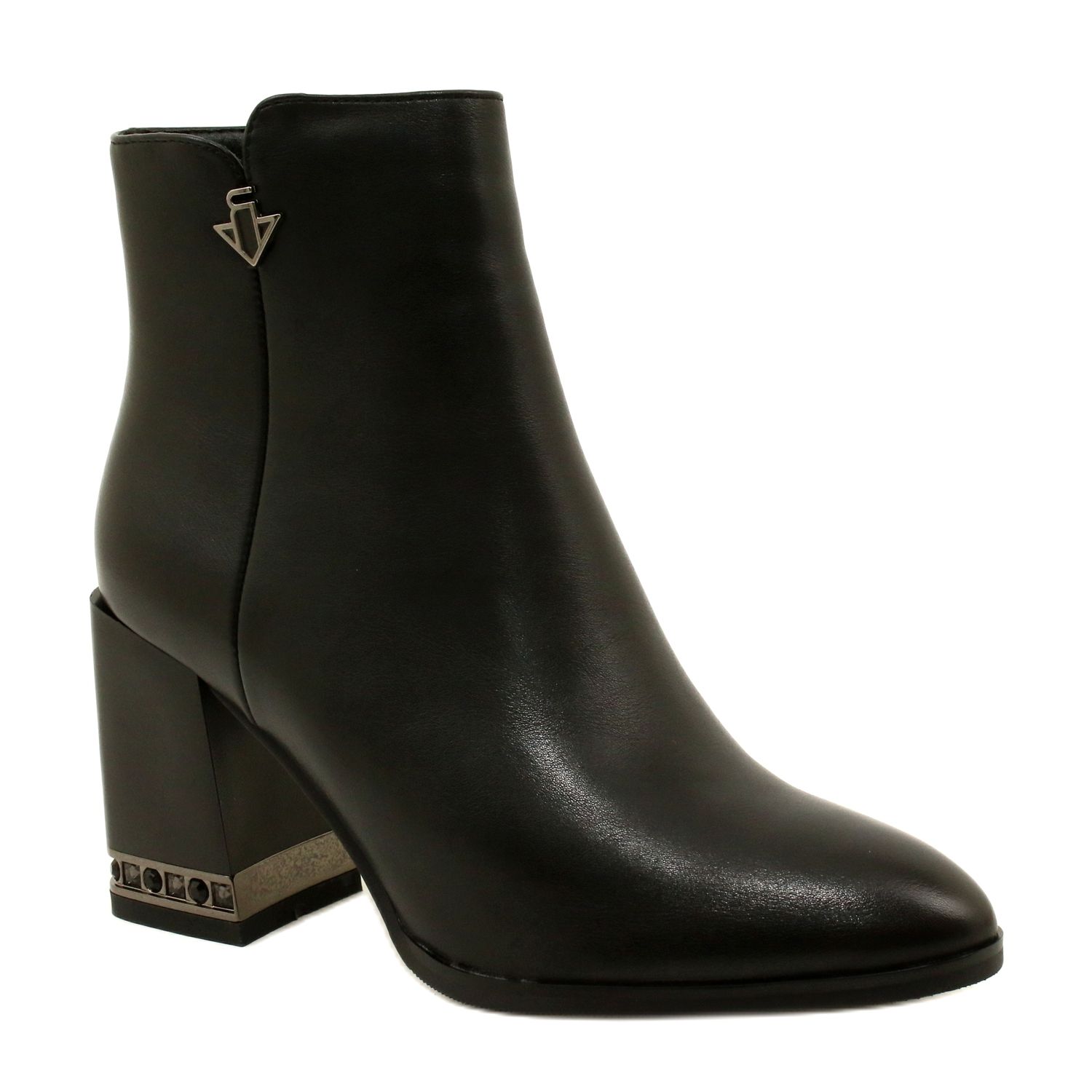 Moderne i praktične istovremeno - ove crne čizme iz Filippoa kombiniraju klasični rez sa spektakularnim detaljima. Izrađene od organske kože, s izolacijom u obliku debelog, kratkog krzna, radit će kao određeni izbor za jesensko -zimsku sezonu. Dekorativni post (8 cm) razbijen cirkonima daje im modernu eleganciju, a bademov nos suptilno mršav figura.