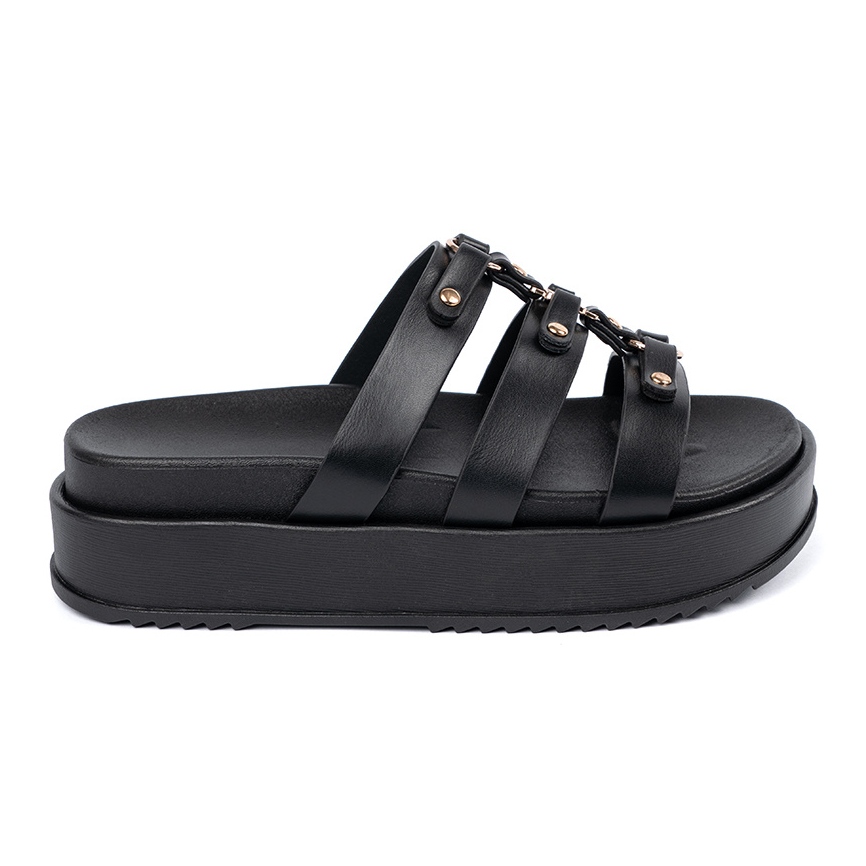 Otvoreni pričvršćivač i klizna kopča osiguravaju jednostavnost stavljanja, što je izuzetno praktično u dinamičnom načinu života. Platforma visoke 4 cm dodaje ne samo klasu, već i udobnost, čineći flip flops da se nose satima, a da se ne osjećamo umorno. Čvrsti, plastični potplat otporan je na razne vremenske uvjete, što ih čini idealnim izborom za razne ljetne avanture.