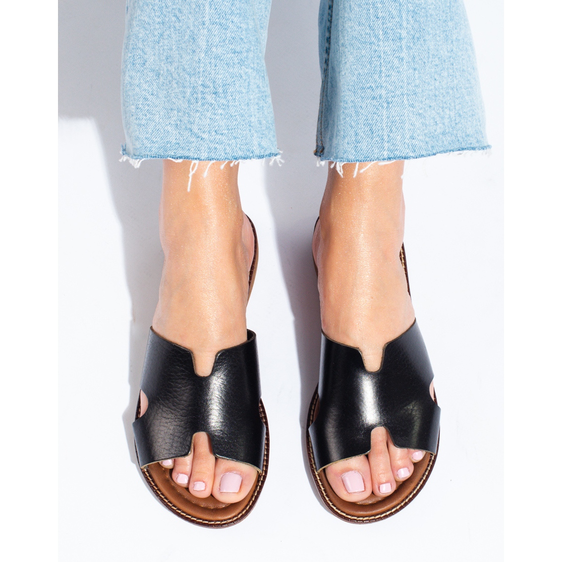 W. Potocki Ženske crne kožne papuče Potocki crna