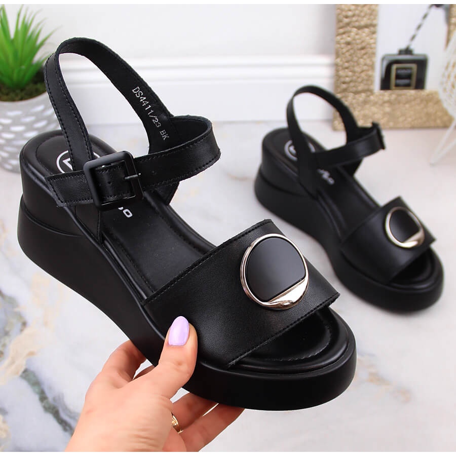 Pojedinosti: Ženske crne kožne sandale na klin Filippo DS4411 crna