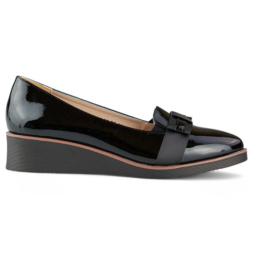 Pojedinosti: Ženske crne lakirane cipele na nisku platformu crna