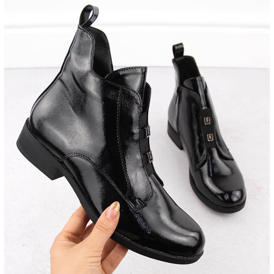 Čizme su izolirane ugodnim krznom, što ih čini savršenim izborom za hladnije dane. Lijepo svjetlucavo gornje izrađene od ekološke lakirane kože i suptilnih ukrasnih kamenja koji ukrašavaju ovaj model, daju mu jedinstveni sjaj i eleganciju. Okrugli pričvršćivač nosa i zip osiguravaju udobnost i olakšavaju ga.