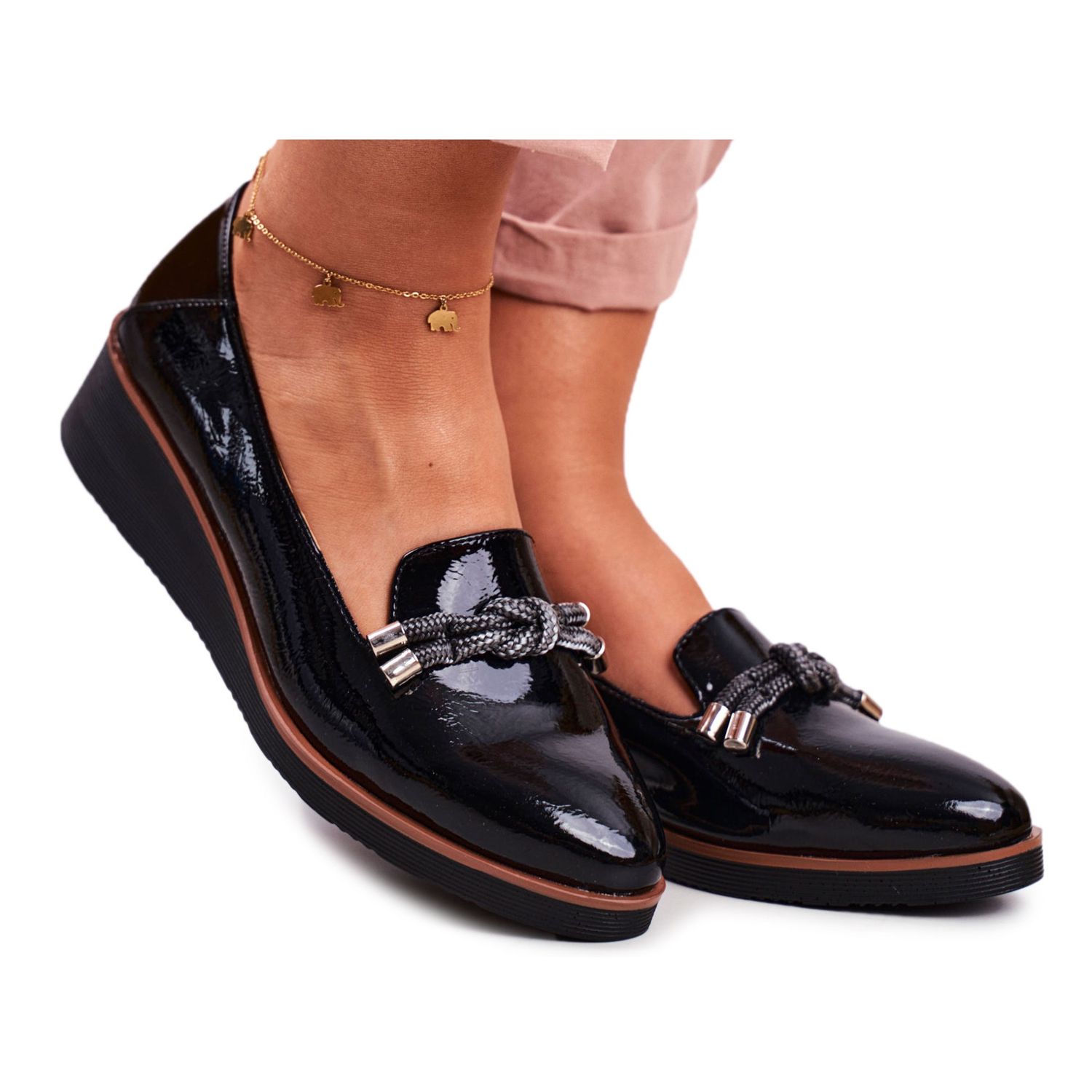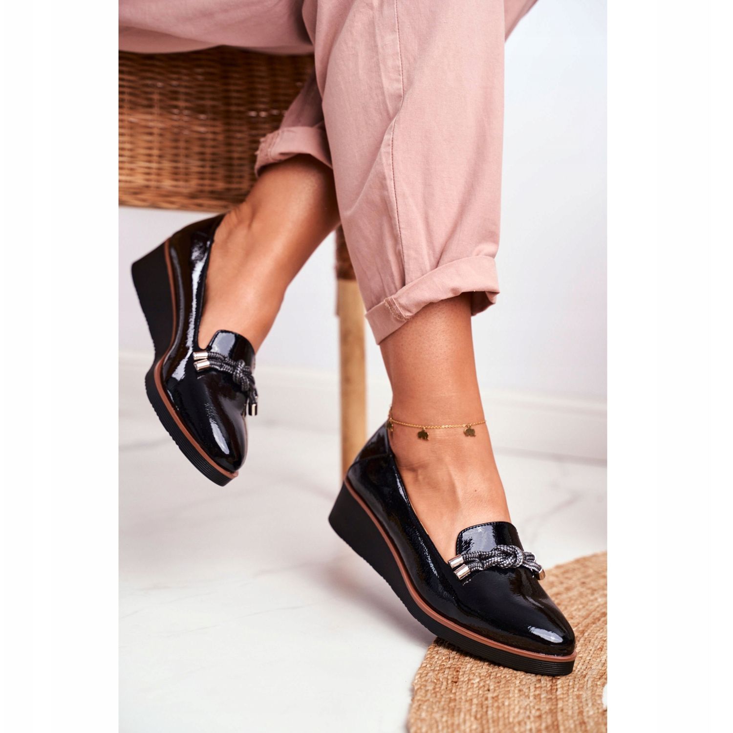 Vinceza Ženske crne mokasine lakirane na klinu Abba crna