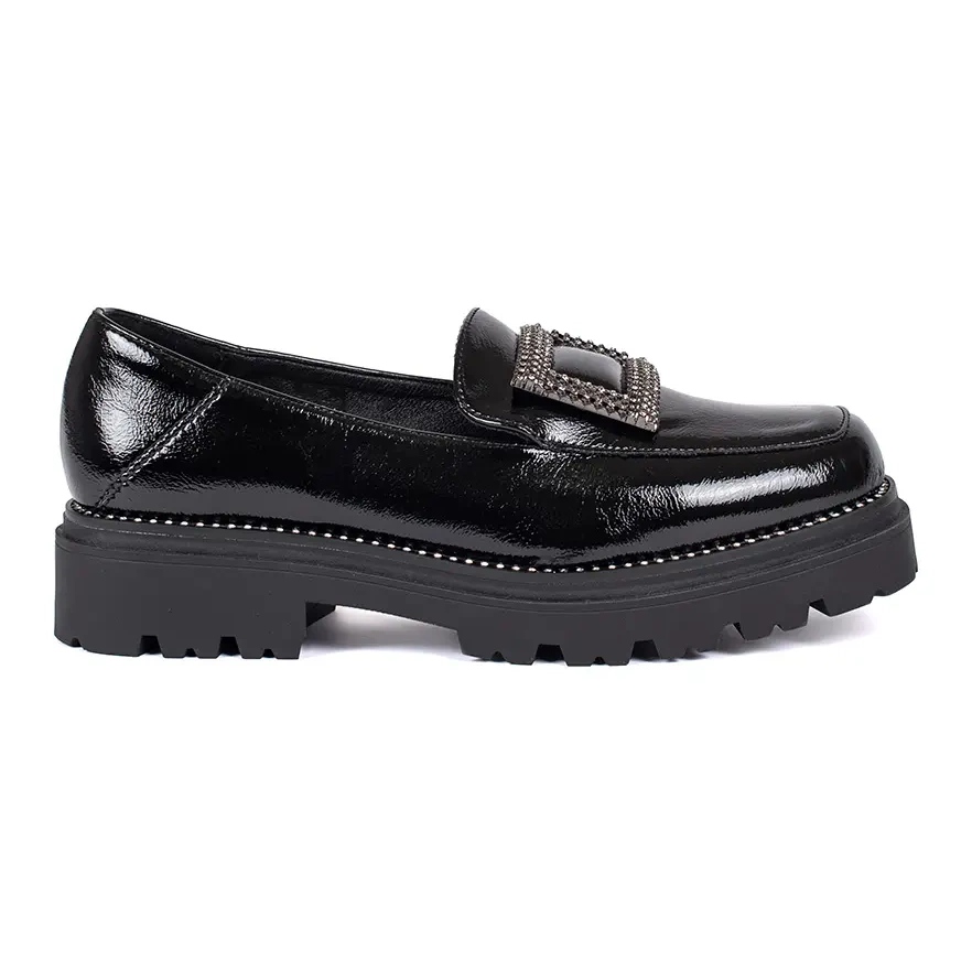 Zanimljiv naglasak su ukrasne stezaljke ukrašene cirkonima koji privlače oči i čine da loafers odgovaraju i ležernijim i elegantnijim stilizacijama. Zahvaljujući ugrađenom pričvršćivanju i umetu, ove su cipele izuzetno praktične i lako se stavljaju.