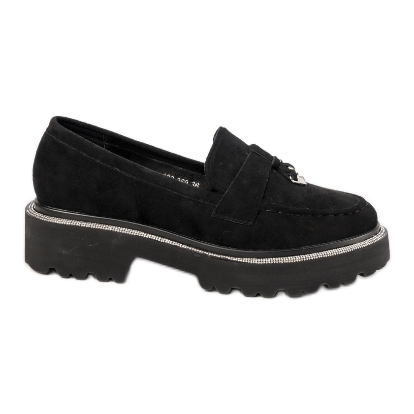 Otkrijte neusporedivu udobnost i eleganciju zahvaljujući ženskim crnim mokasima s cirkonima. Crni model savršena je kombinacija klasika s modernim detaljima koji ove cipele čine savršenim izborom za svaku priliku.