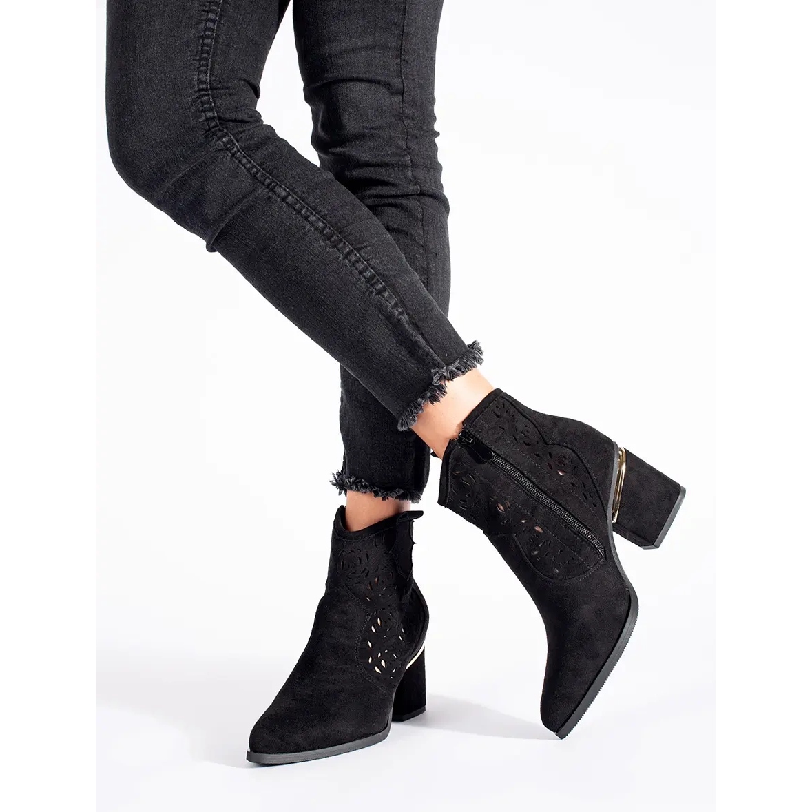 - Model: Ženske crne otvorene kaubojske čizme