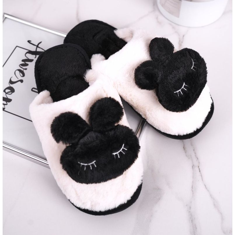 Pojedinosti: Ženske crne papuče od zečjeg krzna bijela crna