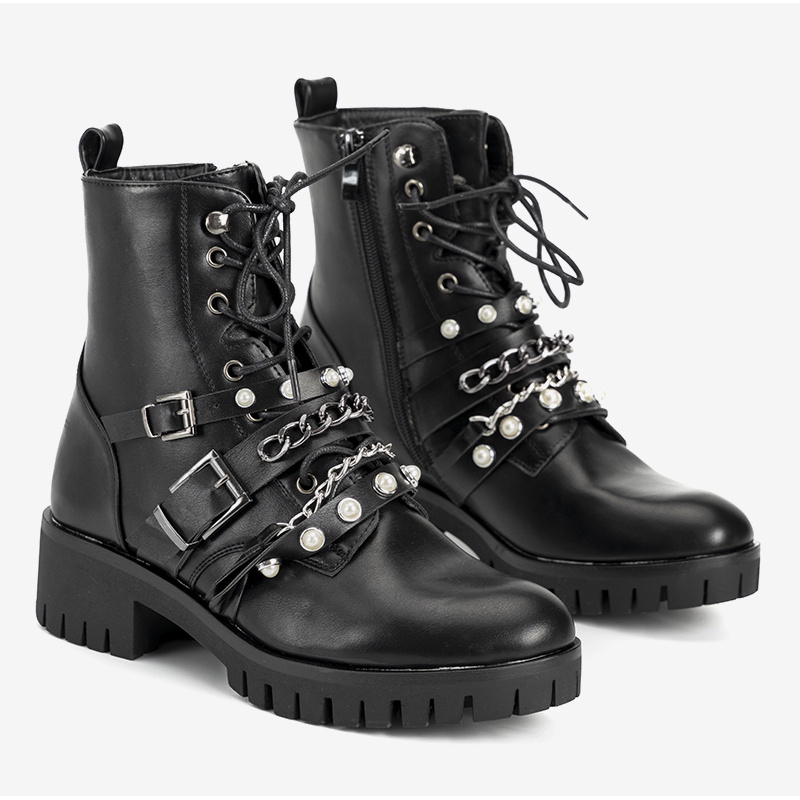 Pojedinosti: Ženske crne planinarske čizme s Faubertovim lancima crna
