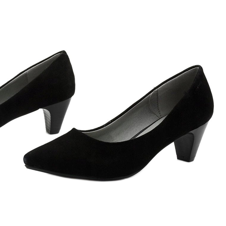 Visina cipele od 12 cm naglašava ženstvenu siluetu, a kopčanje na slip-on olakšava obuvanje. Unutrašnjost izrađena od ekološke kože osigurava udobnost nošenja, a klasična crna boja čini ove cipele izvrsnim dodatkom svakoj garderobi.