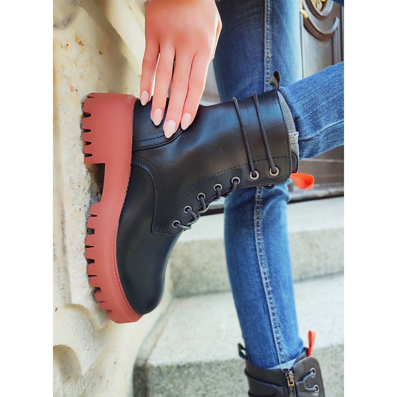 Dominantna crna boja kombinirana je sa suptilnim dodatkom boje, zahvaljujući kojem se radnice lako mogu uklopiti u različite outfite, kako ležerne tako i odvažnije, spremne za urbano istraživanje. Okrugli prsti i čvrsto vezivanje zajedno s patentnim zatvaračem sa strane osiguravaju ne samo udobno pristajanje, već i jednostavnost oblačenja i skidanja.