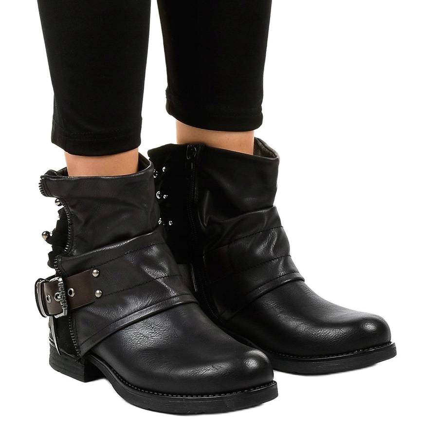 Pojedinosti: Ženske crne ravne gležnjače s klinovima M207 crna
