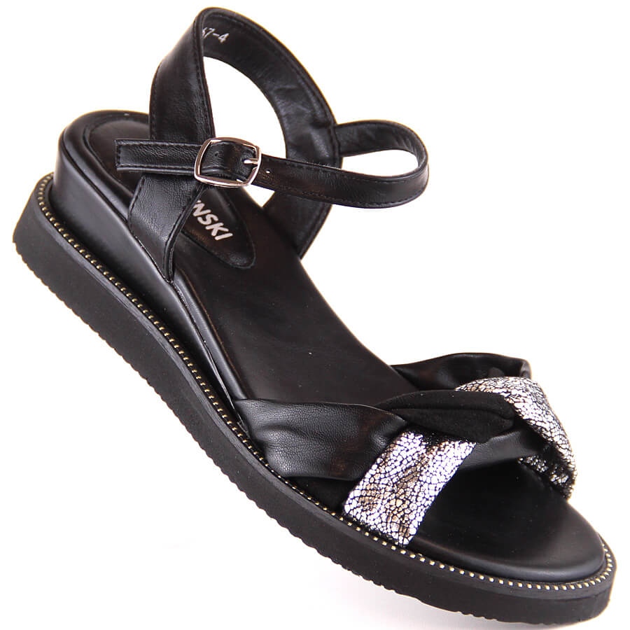 M. DASZYŃSKI Ženske crne sandale na klin M.Daszyński MR2267-4 crna