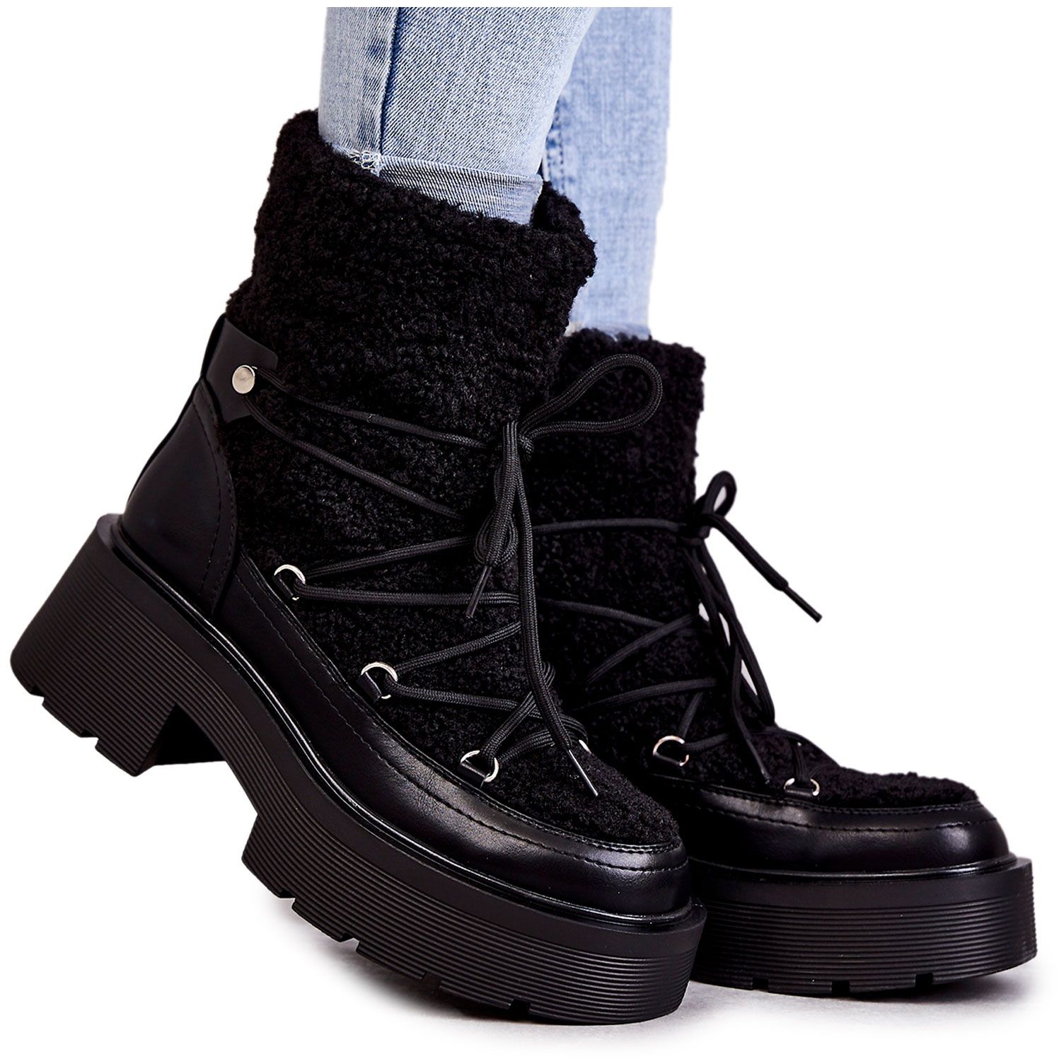 Pojedinosti: Ženske crne Sanna čizme za snijeg s ovčjom kožom crna