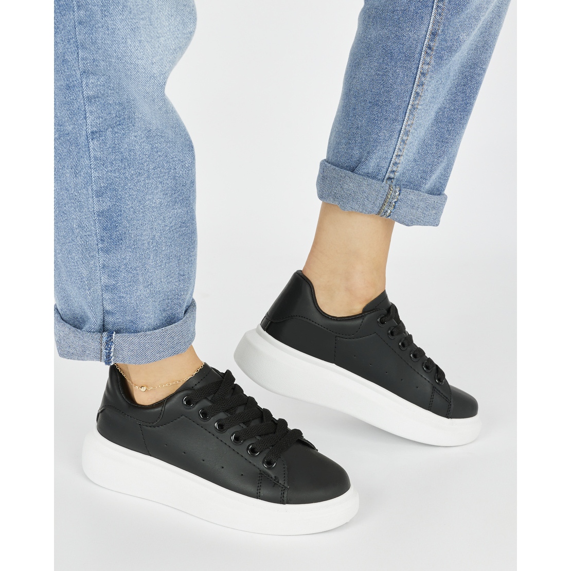 Platforma visoke 5 cm podiže lik, dodajući malo elegancije sportskom stilu. Učvršćivač čipke omogućuje vam savršeno usklađivanje stopala, što je neprocjenjivo tijekom svakodnevnih aktivnosti. Savršeni svaki dan, oni će raditi i u povremenim stilizacijama i u onima s modnim elementima.
