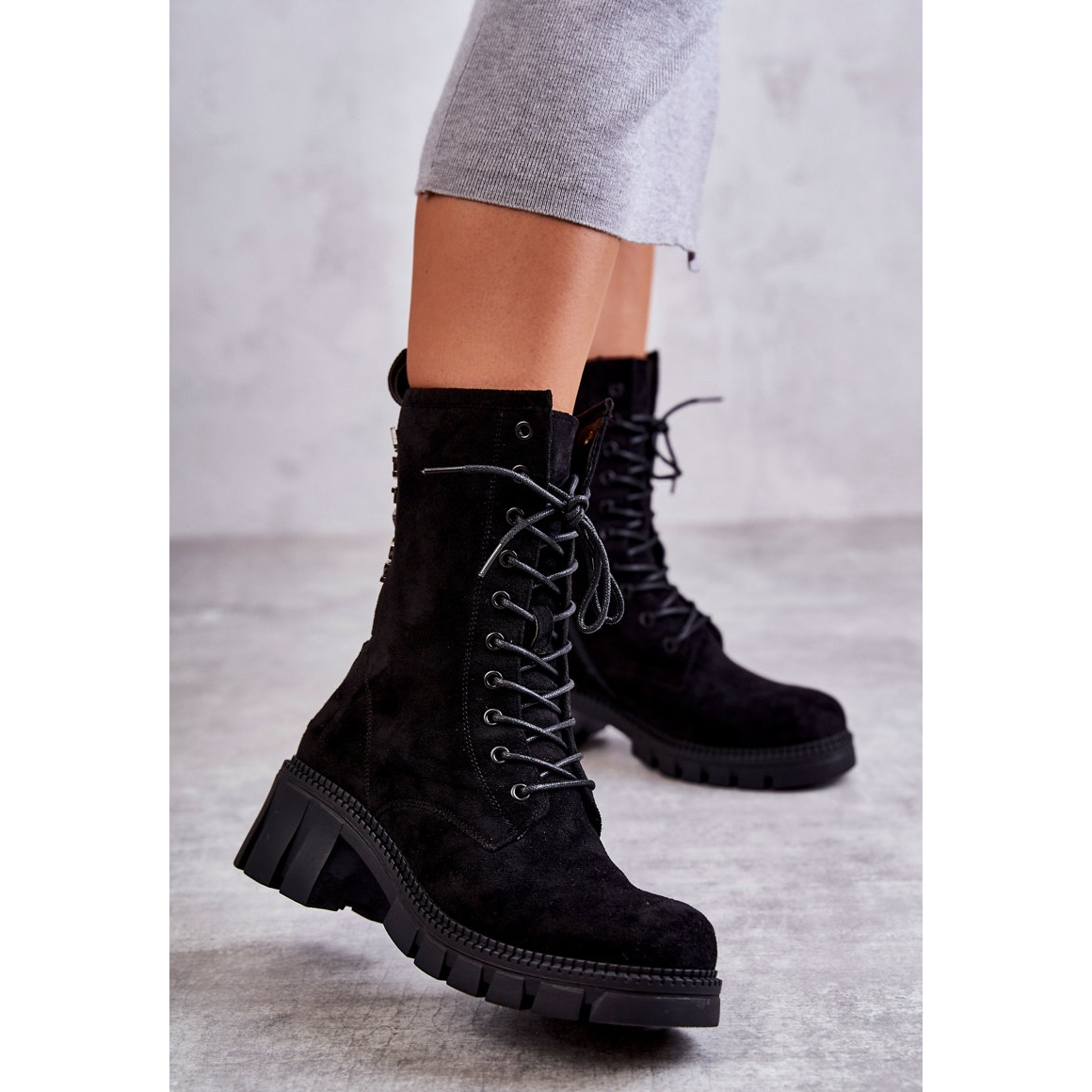 Elegantni detalji, poput ukrasnih slova na gornjem dijelu, daju im jedinstven karakter. Dizajn s ukrućenom petom jamči stabilnost, a patentni zatvarač s dodatnom vezom omogućuje jednostavno obuvanje i izuvanje. Ravna potpetica visine 5,5 cm i platforma 2,5 cm osiguravaju udobnost i praktičnost tijekom cijelog dana, a ugaženi potplat čini da čizme dobro prianjaju podlogu i u težim uvjetima.