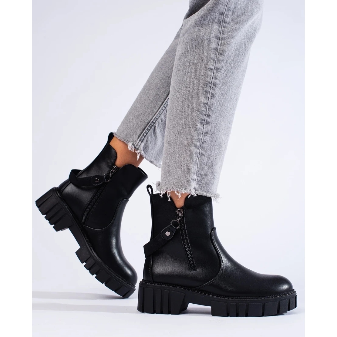 Radnice crnih žena s ukrasom - izolirani, praktični i elegantni. Savršeno svaki dan u sezoni jeseni -zim: stabilan klin od 5 cm, ljepljivi potplat s gazištem i mekom, tekstilnom oblogom osigurava udobnost čak i na niskim temperaturama.