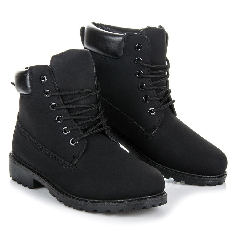 Čizme imaju kopčanje na vezanje i gornji dio iznad gležnjeva, što daje dodatnu stabilnost i udobnost nošenja. Visina potpetice od 3 cm i ravna peta čine ih ne samo udobnima, već i savršenima za dugotrajno nošenje. Potplat im je izrađen od plastike s gazištem, što osigurava prianjanje i sigurnost na skliskim površinama.