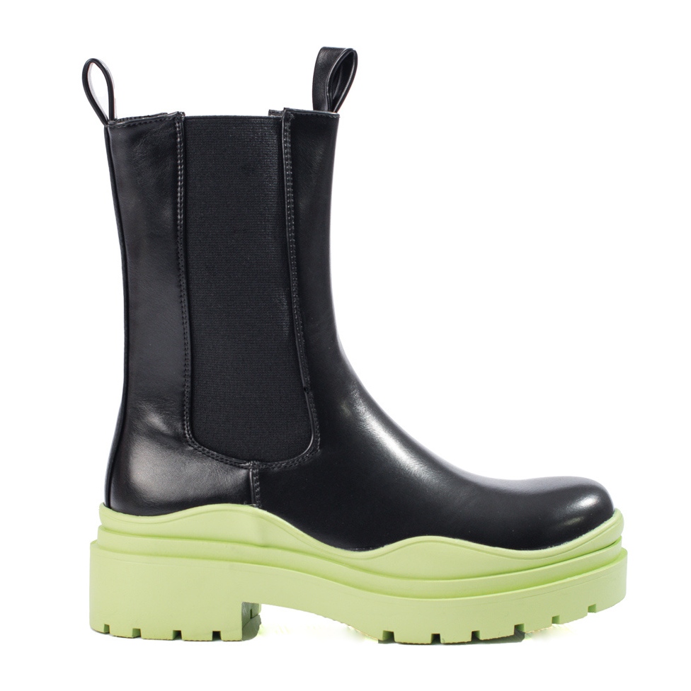 Ženske crno-zelene visoke Chelsea čizme na debeloj Shelovet platformi crna