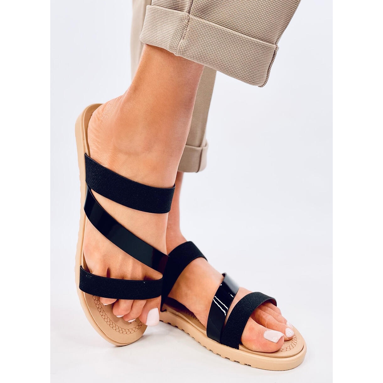 Ovaj model karakterizira ravni potplat s visinom od 2 cm, što ih čini izuzetno ugodnim i savršenim za svakodnevne izlaze, šetnje ili sastanke s prijateljima. Zahvaljujući njihovoj univerzalnoj crnoj boji, Flip -Flops se savršeno miješa s raznim odijelima, od prozračnih haljina do klasičnih kratkih hlača.
