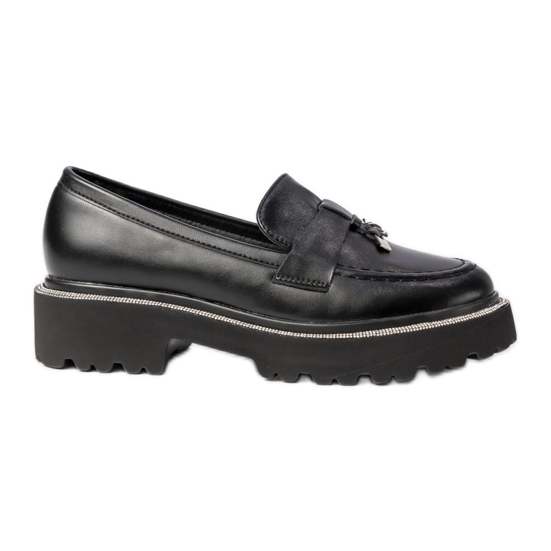 Ono što se ovi loaferi ističu je prekrasan obrubljeni ukras i elegantne rhinestones koji im daju luksuzni karakter. Zahvaljujući glatkom uzorku i univerzalnoj crnoj boji, oni se dobro stapaju s ležernim odijelima, poput traperica i majice, te iz formalnih stilova s jaknom.