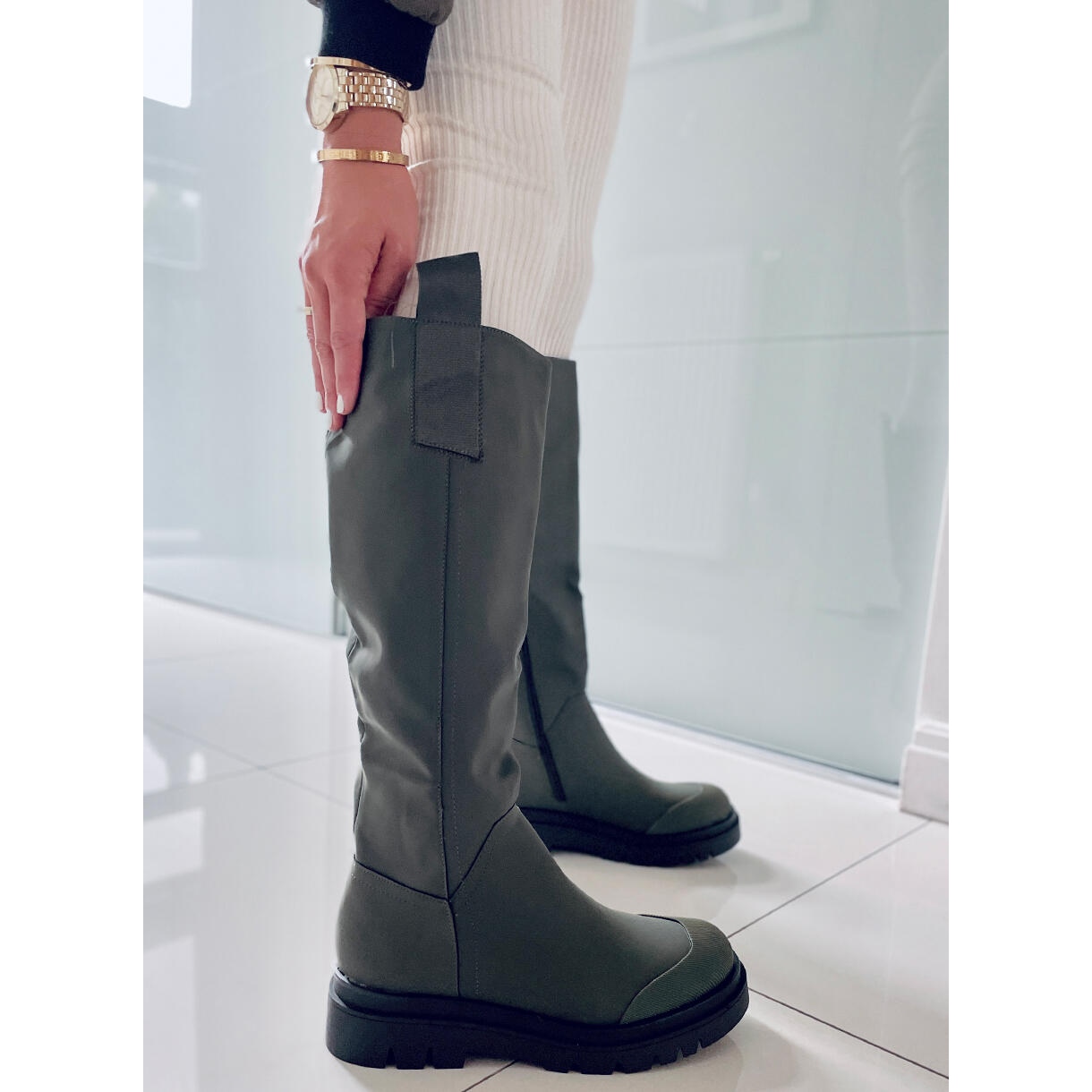 Detalji: PA1 Ženske Gibbs Army Green čizme za jahanje zelena