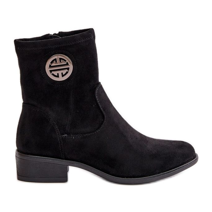 Ženske gležnjače na patentni zatvarač s ukrasnim detaljem, Eco Suede, crna Lerioria