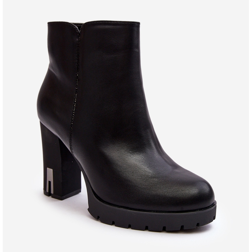 Ženske gležnjače na visoku petu s patentnim zatvaračem, crne rasode crna