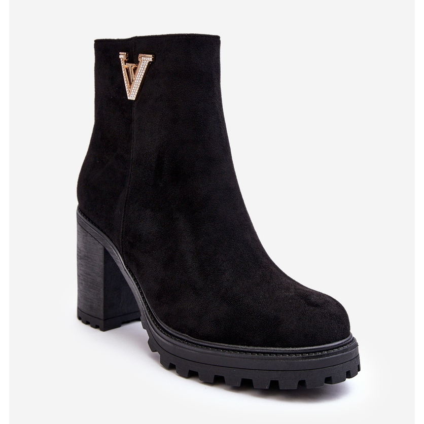 Ženske gležnjače na visoku petu s ukrasom od brušene kože, crne jake crna