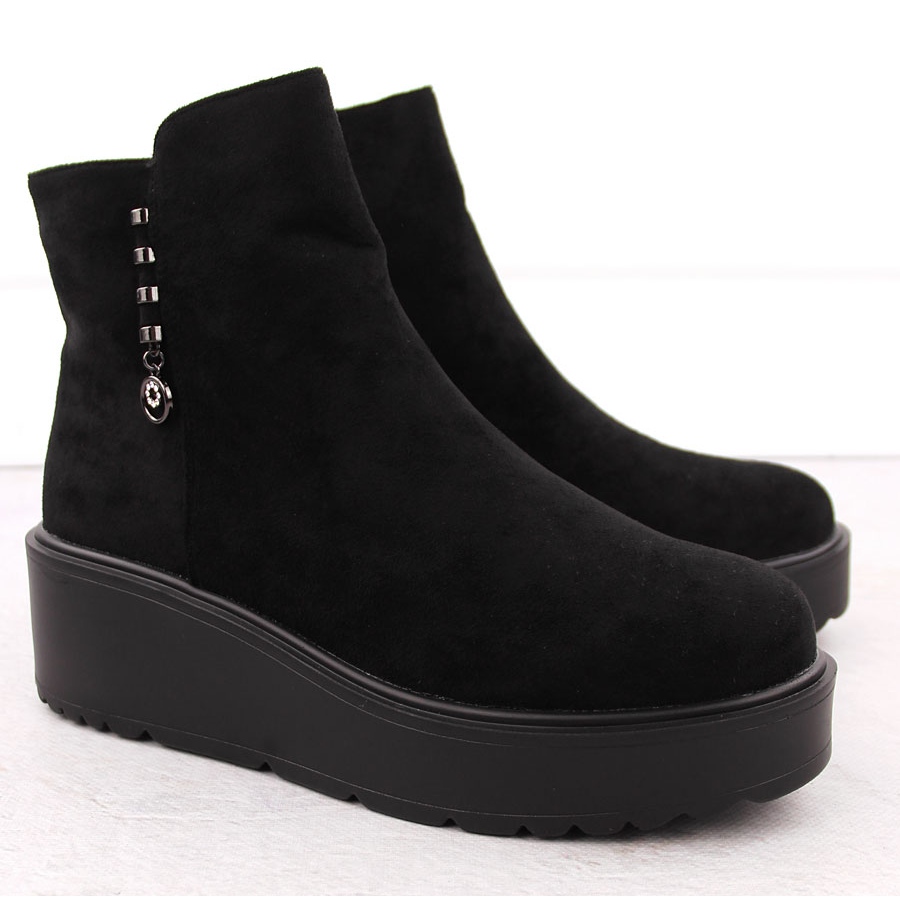 Pojedinosti: Ženske gležnjače od brušene kože na debeloj platformi, crne Potocki 11305 crna
